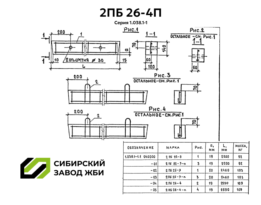 Перемычки железобетонные 2ПБ 26-4П производятся в соответствии с требованиями Серии 1.038.1-1. Они изготавливаются из тяжёлого бетона классов В15 (М200) и В20 (М250) и предназначены для перекрытия дверных, оконных и технологических проёмов.Эти изделия применяются в строительстве зданий из кирпича, природного и искусственного камня, шлакоблока и газобетона. Они используются для усиления слабых мест и правильного распределения нагрузки.