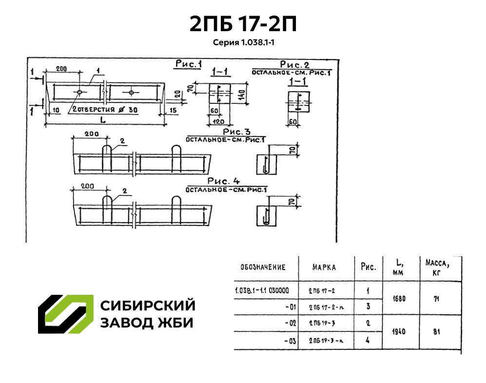 Перемычки железобетонные 2ПБ 17-2П производятся в соответствии с требованиями Серии 1.038.1-1. Они изготавливаются из тяжёлого бетона классов В15 (М200) и В20 (М250) и предназначены для перекрытия дверных, оконных и технологических проёмов.Эти изделия применяются в строительстве зданий из кирпича, природного и искусственного камня, шлакоблока и газобетона. Они используются для усиления слабых мест и правильного распределения нагрузки.